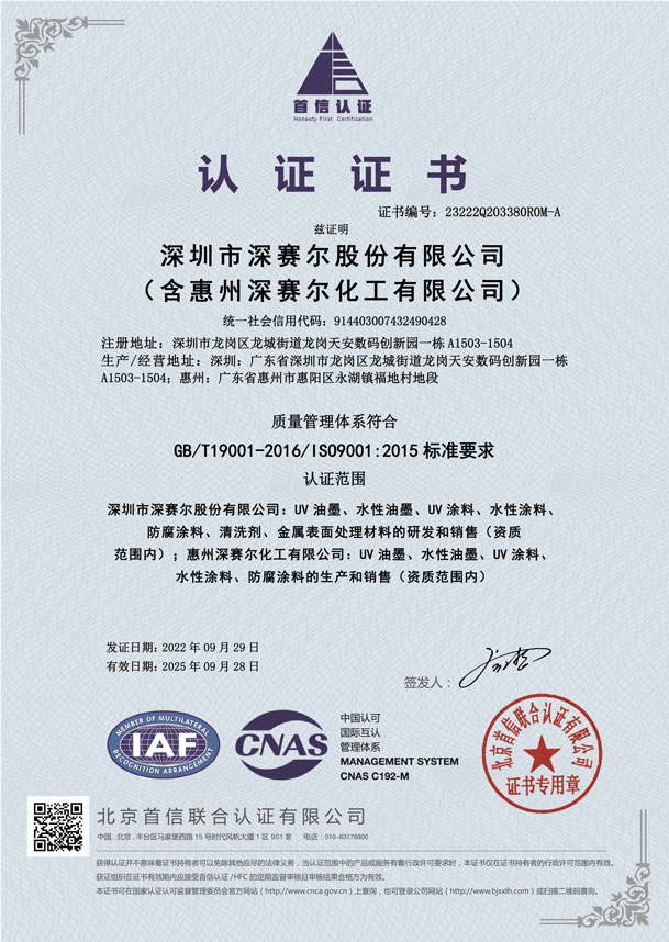 質量管理體系認證證書